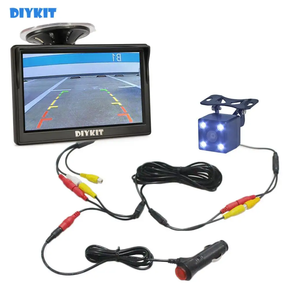 Автомобильная камера заднего вида DIYKIT, 5 дюймов, 800x480, HD, водонепроницаемая, задняя, светодиодная, ночного видения, резервная, с монитором