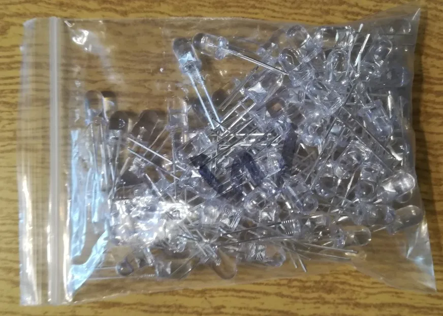 Пакет с пупыркой. Упаковано в Zip пакет. Вроде 100 шт, не считал. Выборочно проверил, рабочие. По поводу "ультраяркие" можно будет утверждать после сравнения с другими светодиодами. Цена нормальная , продавец адекватный.