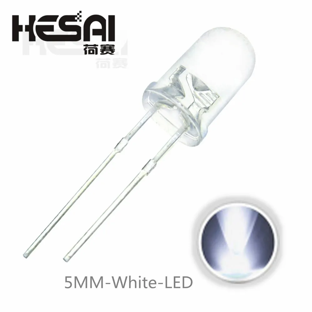 100 шт.лот F5 5 мм белый круглый прозрачный сверхъяркий светодиодный светильник, излучающий диодные диоды