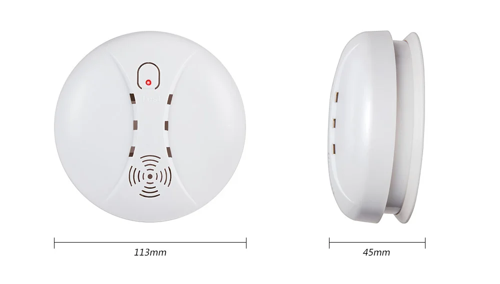 Размер блока: 115х45ммРабочее напряжение: 9 В постоянного тока (6F22 углеродная батарея, тип постоянного тока) (не входит в комплект)Статический ток: ≤ 20uAТок сигнала тревоги: ≤ 40 мАИндикация тревоги: светодиодный индикатор мигает красным цветомСигнал тревоги: ≥ 85dD/3MРадиочастота: 433 МГц