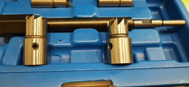 Покупал набор из-за одной фрезы 17х17. Режущие зубья оказались не в плоскости, при установке на ровную поверхность были зазоры между отдельными зубьями и плоскостью, исправил на алмазном шлифовальном бруске. На направляющей фреза болтается, не центруется, посадочное отверстие в фрезе на 0,7мм больше чем шток направляющей, исправил с помощью втулки из нержавеющей фольги толщиной 0,25мм. В итоге, посадочные места со следами прогара были отфрезерованы, форсунки установоены, полёт нормальный. Фрезы БАРАХЛО.
