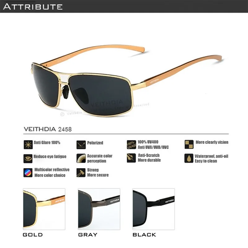 Солнцезащитные очки Мужские VEITHDIA, водительские, спортивные, с поляризационными стеклами, степень защиты UV400, 2458
