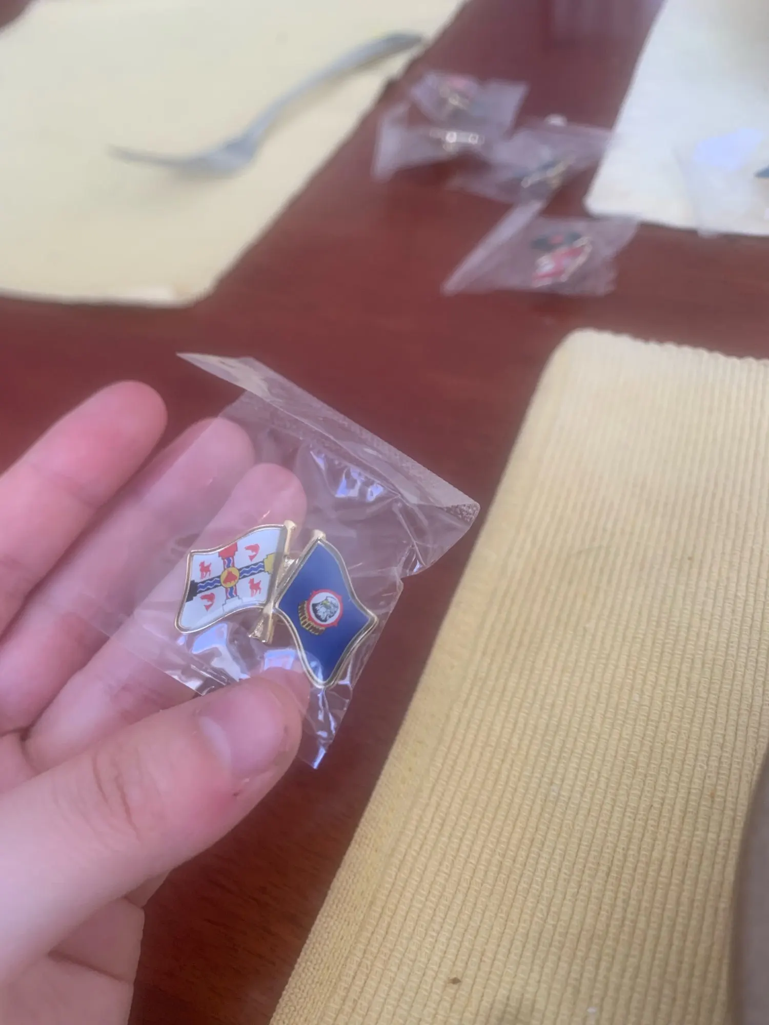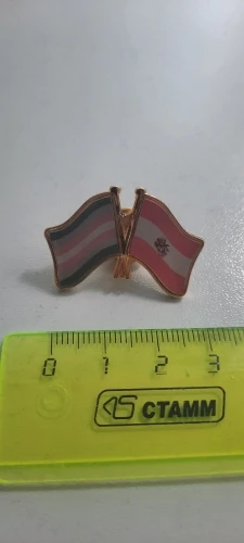 Булавка отличного качества, флаги по заказу. Цвета немного ярче, чем изображение, которое я загрузил, но это, как ожидается, с различными экранами и такими. Отличный продукт и приятный продавец для общения!