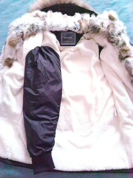доставка меньше месяца. упаковано в пакет. параметры соответствуют таблице, с учётом погрешности. вместе с биркой есть образец наполнителя. мягкого подкладка нет в рукавах. замок не до самого конца, внизу нет резинки, за это, кстати, возместили часть суммы. для меня широковата резинка на манжетах. мех похож на старого кролика, сильно лезит))) верхняя ткань плотная. на данный момент погода максимум была -15°, было тепло и даже не в свитере. такую же модель брала года 4 назад, эта кажется тоньше и наполнитель другой, поэтому пока нет уверенности что будет тепло в -30°, но хочется верить)