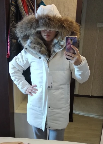 Брала за 3856.Доставка в Саратов месяц,из них дней 25 по Китаю.Отслеживание полное.Взяла на этот раз S на 86-68-86.Рост 160,вес 53.До этого брала М,прям огромный,а этот отлично,даже самый толстый свитер во внутрь можно одеть.В подарок одноразовая маска-респиратор.Мех по жёсткому лезет,но что вы хотите за эту цену?Данную куртку заказываю 3-й раз у разных продавцов в связи с ценой.У этой самый пушистый мех на капюшоне,у остальных(они каждая своей марки,но модель эта же)мех прям вообще ужас,даже не носили.Внутренний мех крепится сверху на 3 пуговицы(одна из них закрывает петельку,чтоб повесить куртку,что не удобно каждый раз растёгивать при снятии),далее по длине тела крепится на тугие клёпки.В сравнении в другими куртками эта не имеет пакетика с мехом в доказательство того,что внутри,но он и не нужен.Есть бирка с размером и доказательством новизны.Есть лейбл на самой куртке с размером.Рукава закаканчиваются"кусочком свитера",задувать точно не будет.