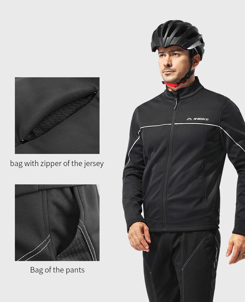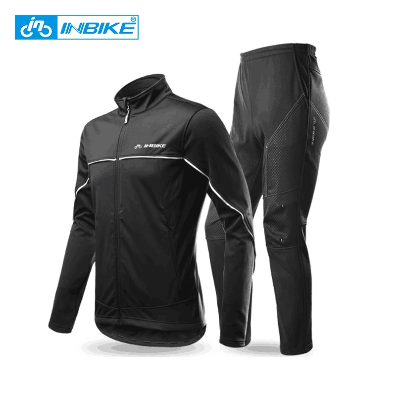 Комплект зимний мужской из куртки и штанов для велоспорта INBIKE, Флисовая теплая ветровка, ветрозащитная одежда, костюм для альпинизма и велоспорта