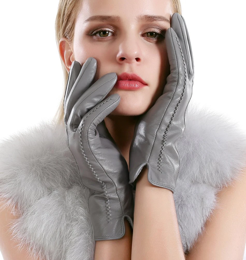 Перчатки женские кожаные светло-серые из овечьей кожи, теплые, female-2226H