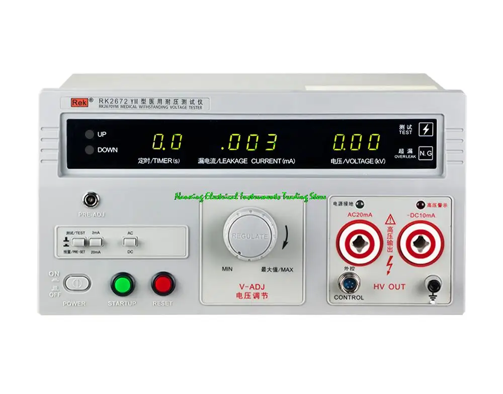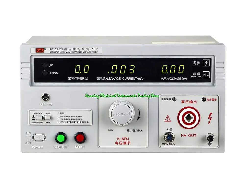 Введение продуктаRK2670Y медицинский испытательный прибор Выдерживает напряжение имеет все функции обычного испытательного устройства выдерживает давление и увеличивает функцию обнаружения дуги (Flashover), он может тестировать феномен «Flashover» электрического оборудования интуитивно, точно, быстро и надежно через внешний осциллограф, измеренное электрическое оборудование без феномена «Flashover», дисплей осциллографа «стабильная Lissajous фигура» (I. Е. Закрытое кольцо), если в электрическом оборудовании происходит феномен «Flashover», то на лиссаяльной кромке будет происходить более большое «Flashover» явление электрического оборудования, для обеспечения безопасности измеренного электрического оборудования. Этот продукт также подходит для различного электрического оборудования, необходимого для обнаружения «Flashover» Дефекты, это незаменимый тестер напряжения, который выдерживает производители медицинского электрического оборудования, Отдел обслуживания, использование единиц и отдел контроля качества продукции, отдел технического наблюдения.В соответствии с медицинскими стандартами GB9706.-2007(IEC60601-1:1988).