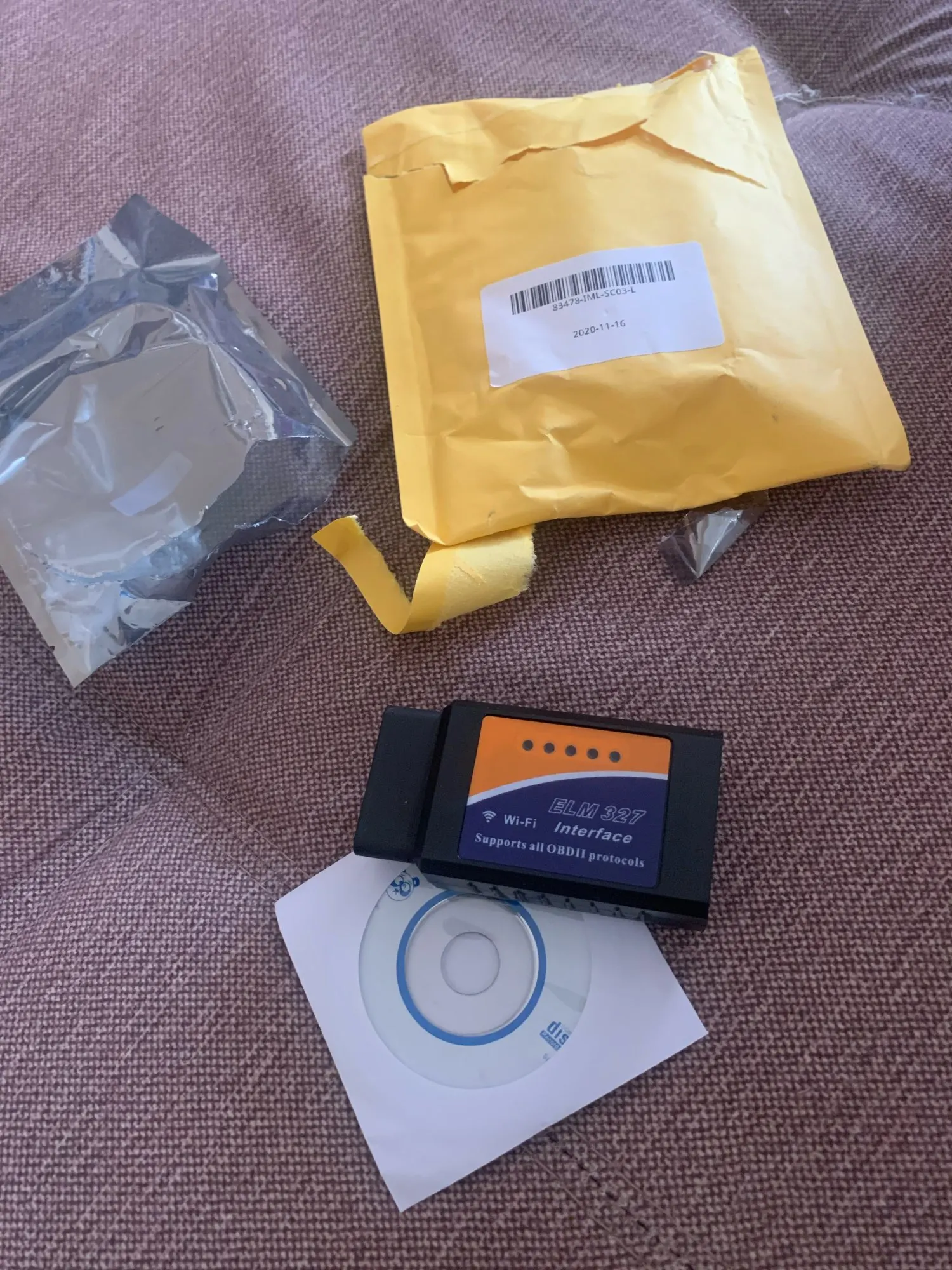 Доставка в МО быстрая. С айфоном не захотел дружить. На андроиде полёт нормальный. В комплекте диск с ПО для компа. Данные все читает. Ошибок у меня не было, так что тут без комментариев. Всё окнорм . Упаковка: конверт с пупыркой и внутри запаянный пакет. Рекомендую.
