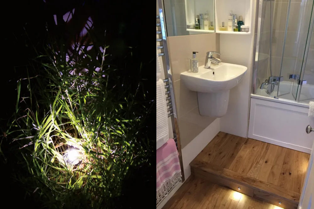> Отлично подходит для подъездных дорожек, дворов, полей, навесов, ступеней, подъездов, проезжей части, зала, ванной комнаты и в любом месте, где вам нужен дополнительный светильник или для украшения. И его можно установить на подземный или настенный даже потолок.