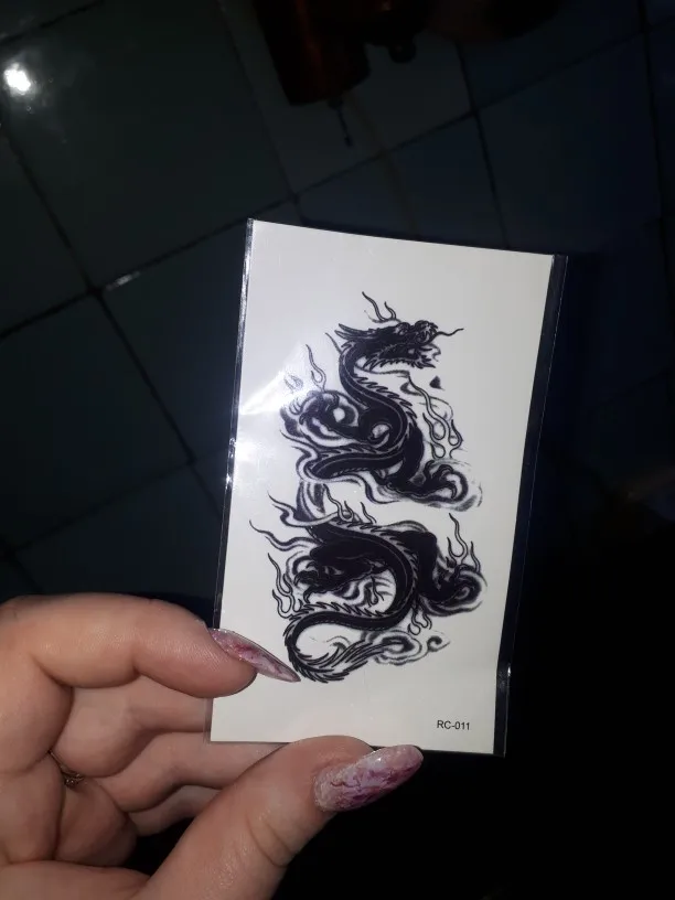 Пришло достаточно быстро. Сама тату небольшая, примерно 2/3 ладони. Качество приятное.
