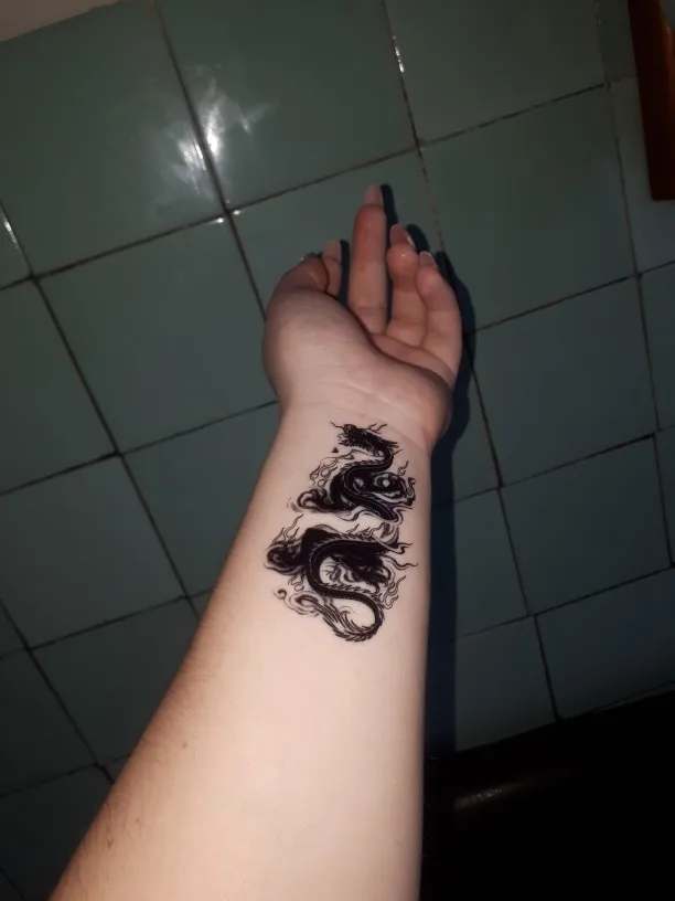 Красивый дракон, но быстро стирается. Наносили на предплечье
