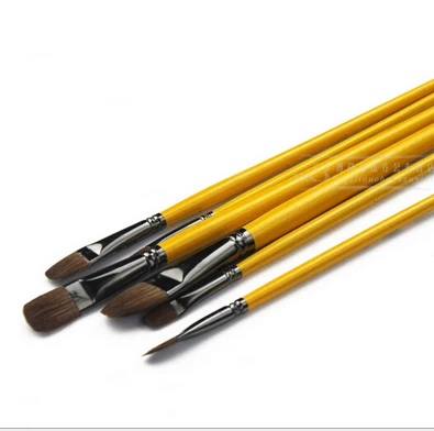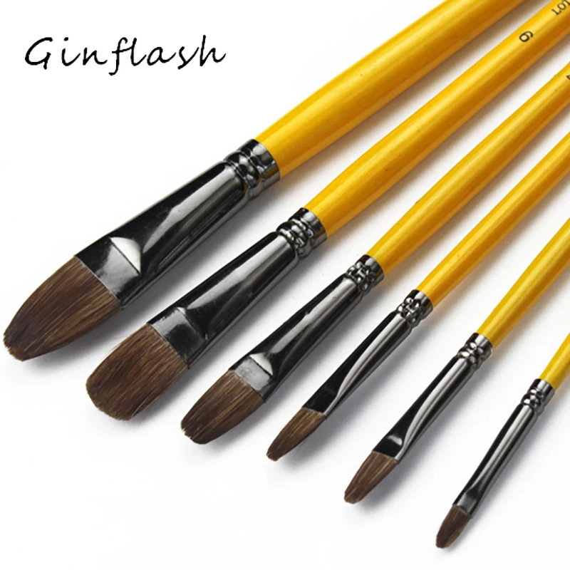 6 шт.компл., кисть для рисования волчьим мехом разной формы, деревянная ручка, гуашь, акварельная масляная краска, набор кистей для рисования