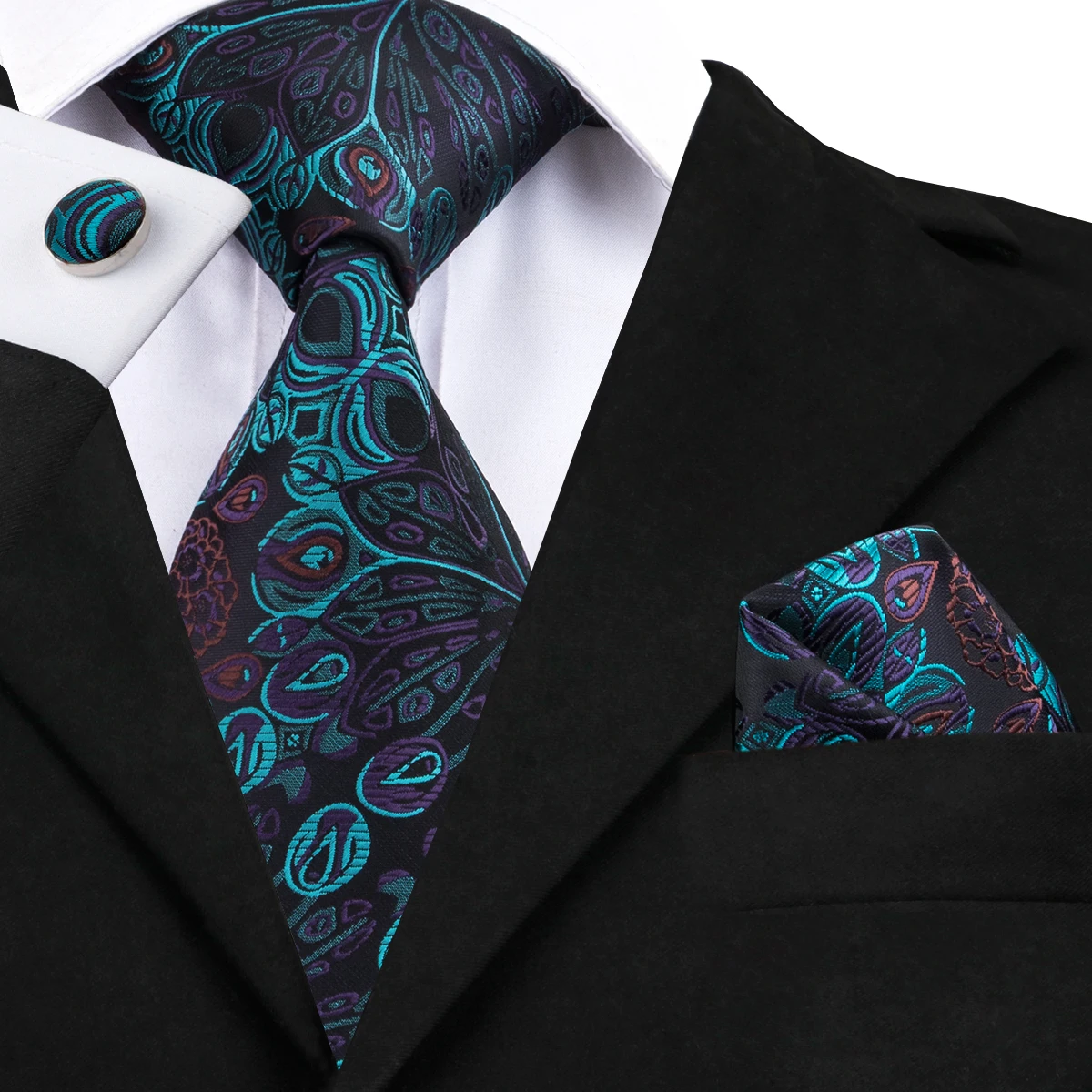 Мужские синие цветочные принты 100% жаккардовые тканые шелковые галстуки Hanky запонки для официальных деловых свадеб на продажу C-612