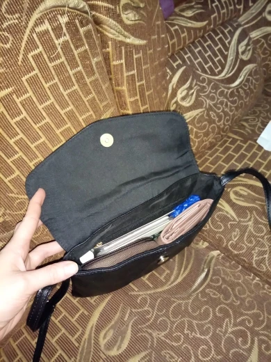 Сумочка маленькая, лёгкая. Молнии-застежки нет. Внутри есть маленький кармашек на молнии, но что туда положить? Поэтому функция у сумочки, как у большого карман с клапаном. Нитки не торчат. Продавца рекомендую. Товар отправил быстро.