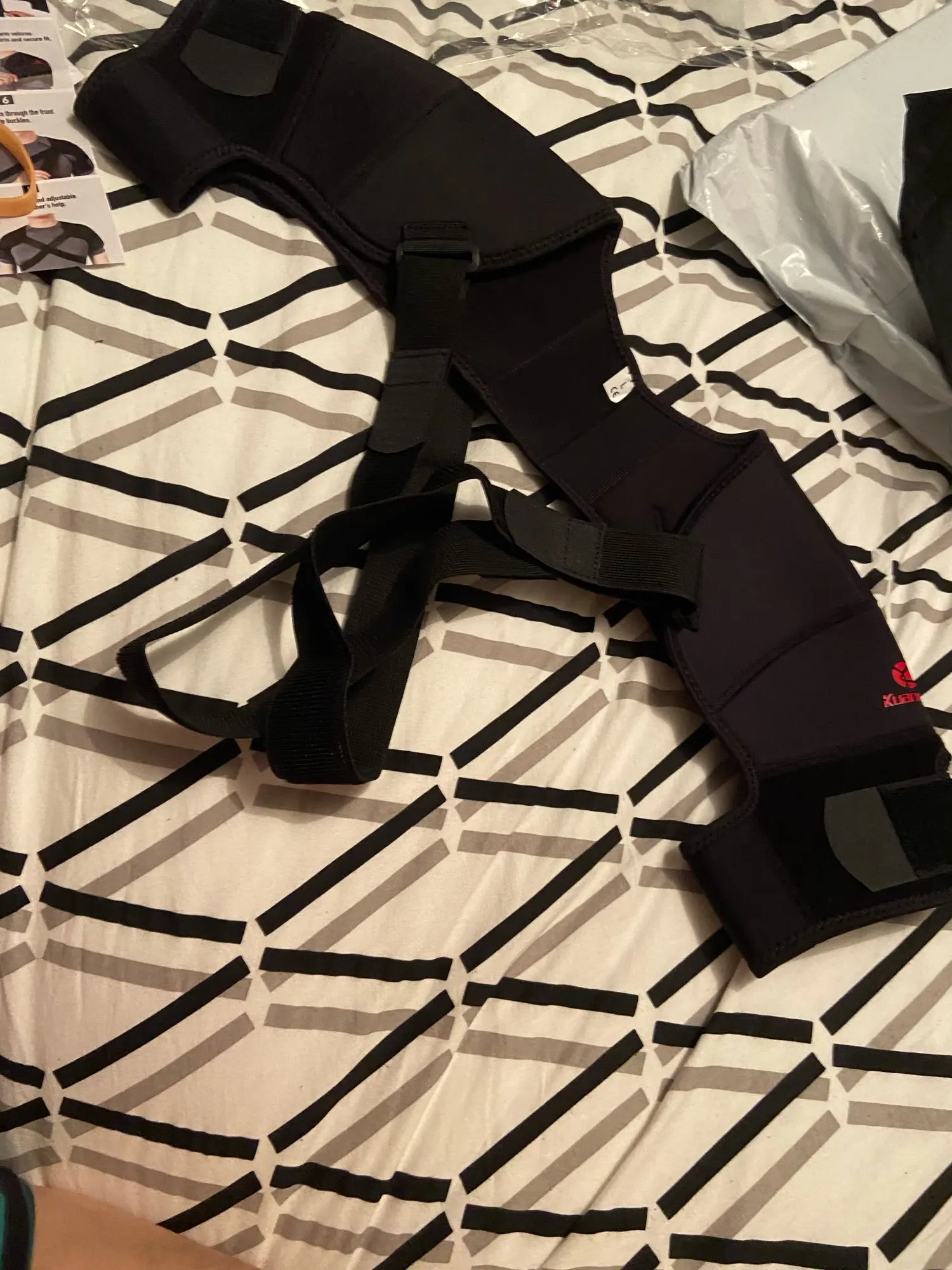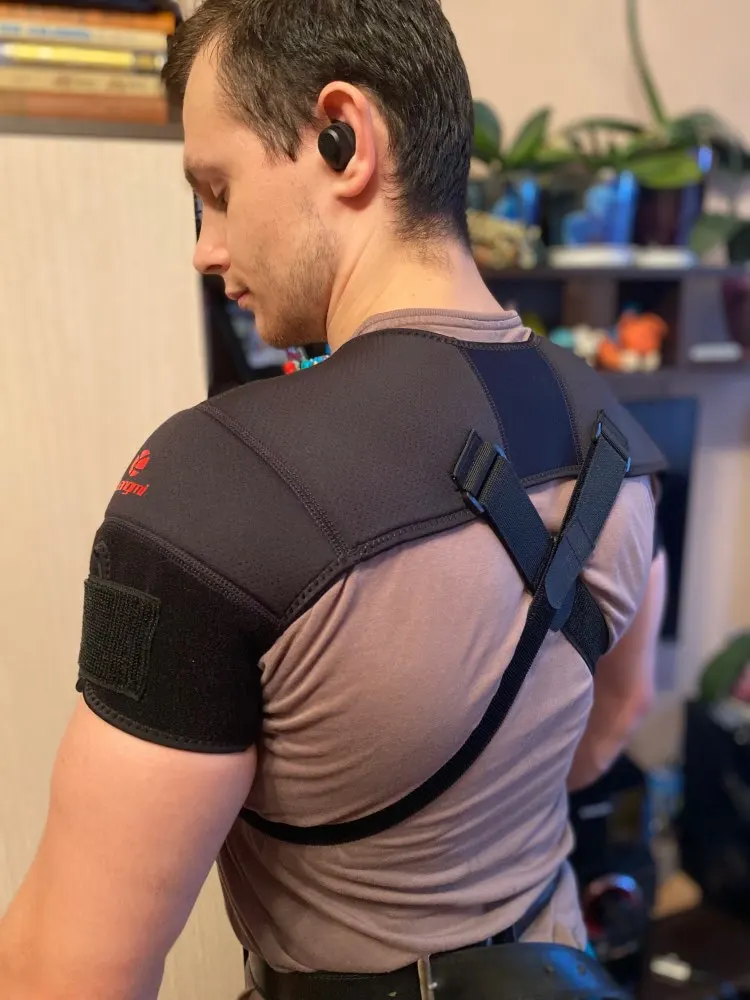 Когда приехал этот, назовём его «фиксатор плеча», и бы впервые примерен, я подумал, что ерунда получается. От чего эта приблуда может защитить? При том, то в анамнезе вывих акромиального конца ключицы слева и лабильность правого плечевого. Но оказалось, что защита работает. Уж не знаю, как, но однозначно чувствуется компенсация разгибания плечевых суставов, плюс, некое перераспределение нагрузки во время жима лёжа/разведения гантелей на наклонной скамье. Суппорт сделан добротно, нитки не торчат, ткань приятная на ощупь, тянется. Однозначно рекомендую этого продавца и саму продукцию Kuangmi.