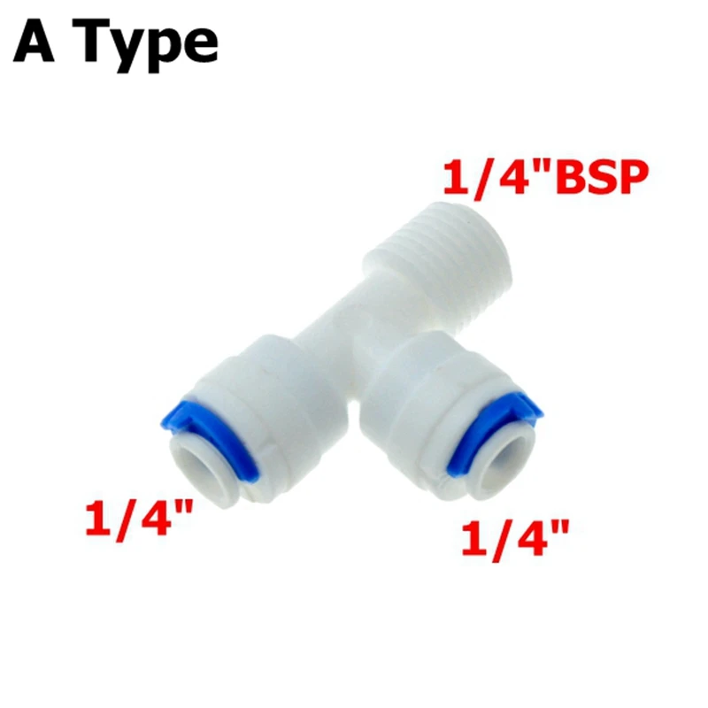 RO 3-ходовая тройник быстрого соединения воды 14 "38" OD соединение шланга 38 "BSP наружная резьба пластиковая Трубная муфта система обратного осмоса