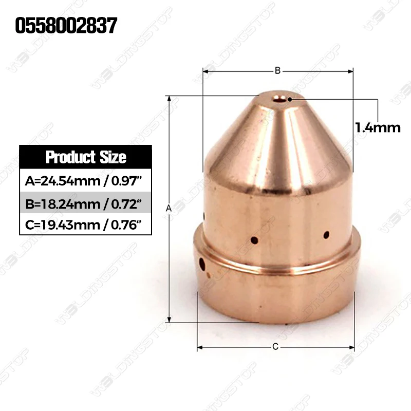 10 шт. x плазменный электрод Ref: 0558001969 WSP-06110010 шт. x плазма 1,4 мм сопло Ref: 0558002837 WSP-061101