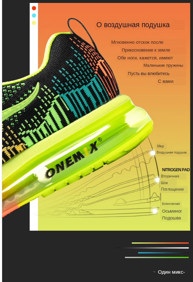 Кроссовки мужские спортивные ONEMIX, с дышащей сеткой, с подсветильник кой, европейские размеры 39-47