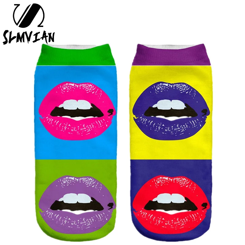 Женские носки до щиколотки, с 3D изображением губ, с ярким принтом