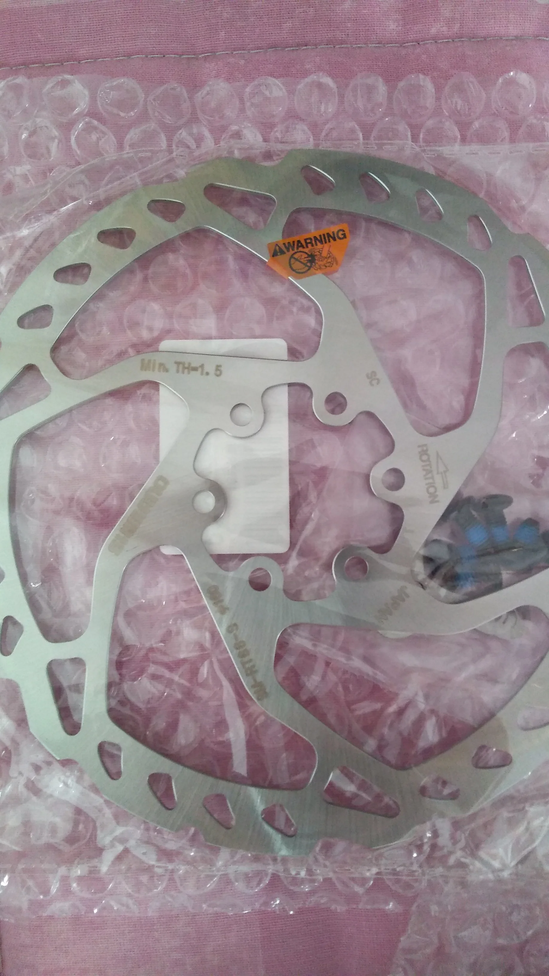 очень хорошая эффективность торможения на этом диске, стоял до этого sram, вообще не то, отличие очень большое, колодки старые но на этом диске тормозит гораздо лучше, товар пришел в коробке с болтами и какие то еще фиксирующие скобы, наверное чтобы болты не откручивались