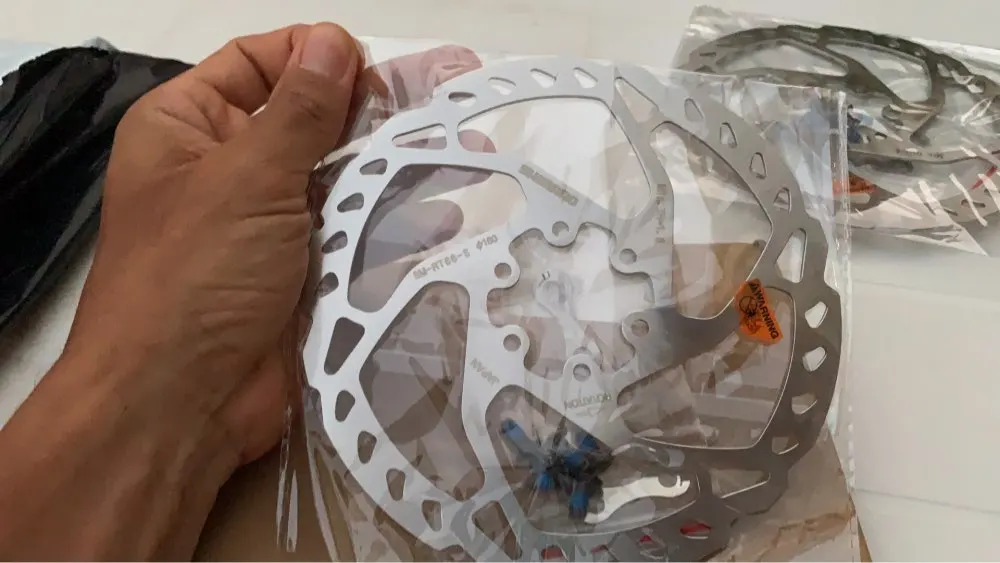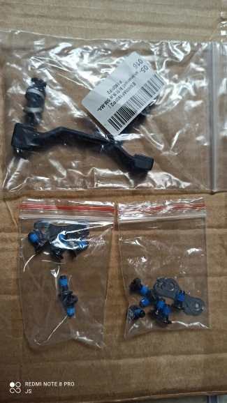 Комплектность норм. Есть подозрение на некачественный товар, несмотря на наклейку Шимано. Наклейка приклеена не ровно, плюс гравировка странная, похожа на кустарную, но это не точно. Качество упаковки заказа из магазина целиком - отрицательно. На ротор положили ключ, что могло привести к искривлению ротора.