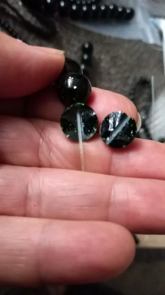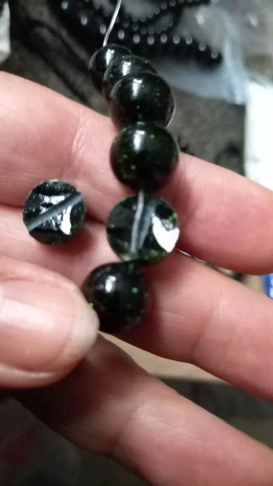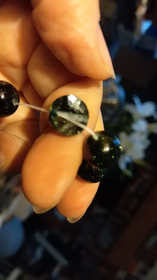 Бусины красивые, а особенно если на них посветить. Очень похожи на синий авантюрин.