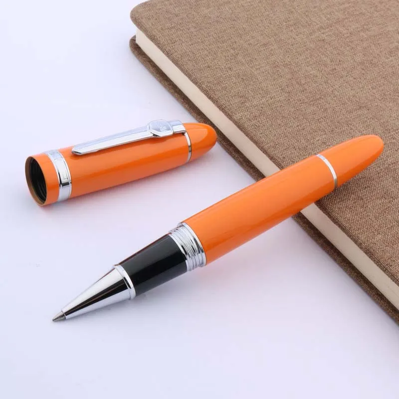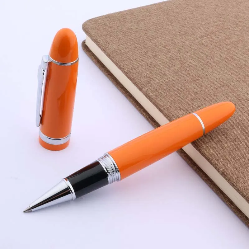Горячая распродажа красивая оранжевая лакированная с серебряной отделкой 0,5 мм роликовая шариковая ручка по акции JINHAO 159