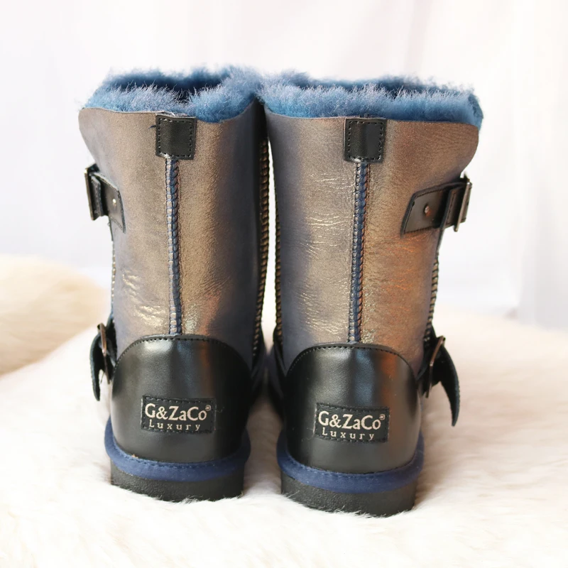 G Zaco Роскошные зимние сапоги из овечьей кожи женские сапоги из овчины с мехом женские сапоги из шерсти с пряжкой женские сапоги из натуральной овчины