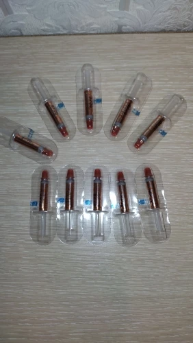 Паста равномерной консистенции, запечатана в тубе, наносится легко, в сравнении с mtg-10(14.3W/m-K) на райзене особой разницы не заметил(2,3 град). Доставка очень долгая-89 дней, но хоть пришло и на том спасибо.