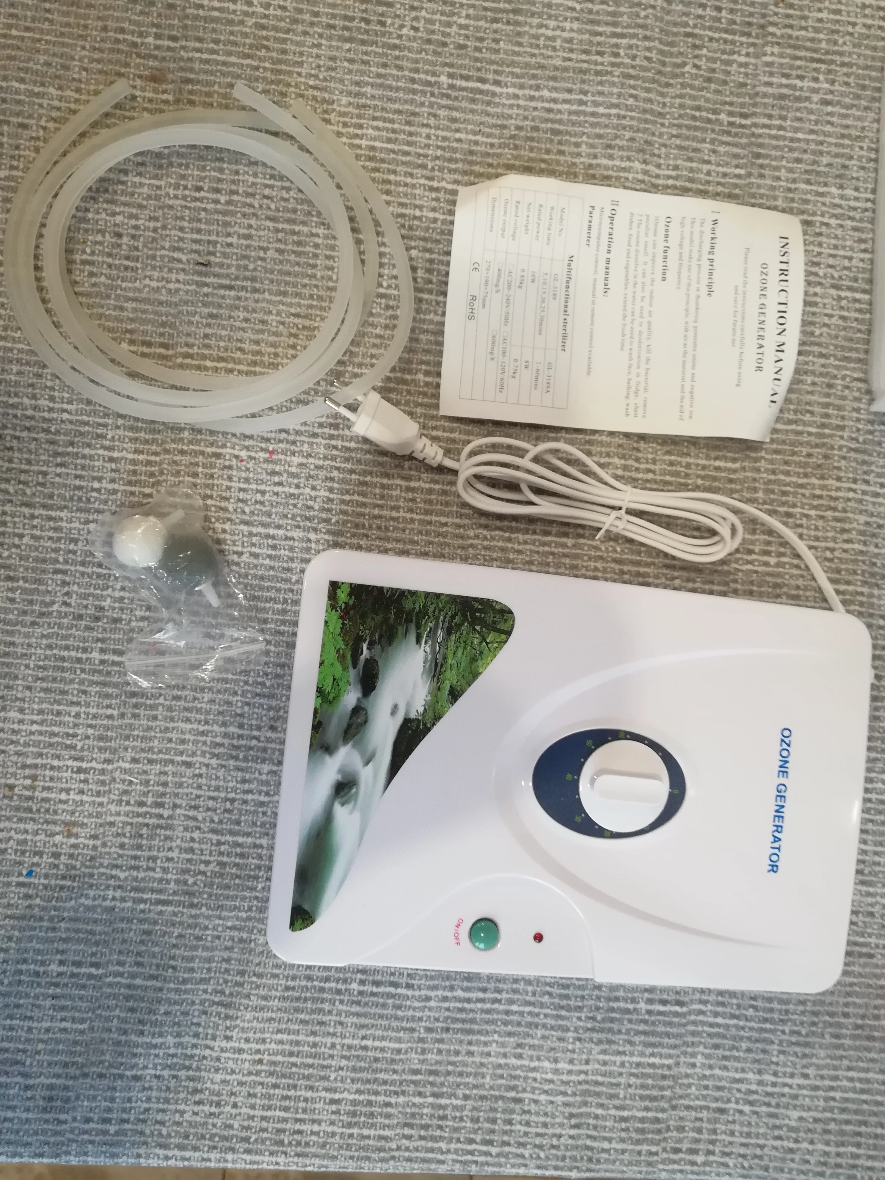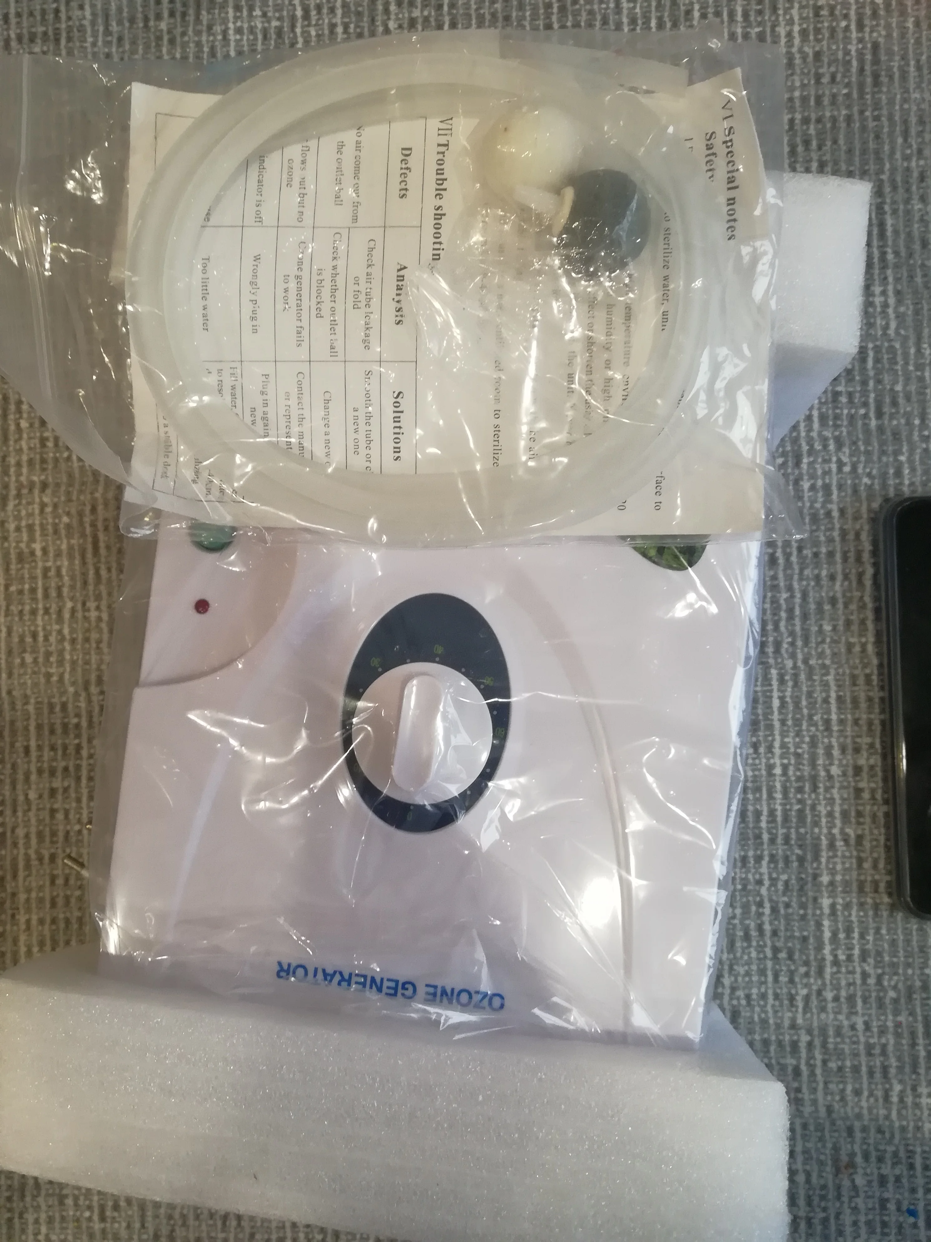 Получил озонатор, подключил не работает так как брал не себе а начинать споры и доказывать на али свою правоту последнее время ещё то удовольствие поэтому решил сам вскрыть прибор, как же я удивился увидев не воткнутый штекер на плате, после сборки всё заработало. Но это только говорит о том что продавец даже не проверяет приборы перед отправкой. Сам прибор представляет собой аквариумный компрессор + генератор ультрафиолета нападобее что кварцуютмедицинские кабинеты, очень не приятный запах и точно не озон