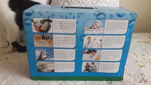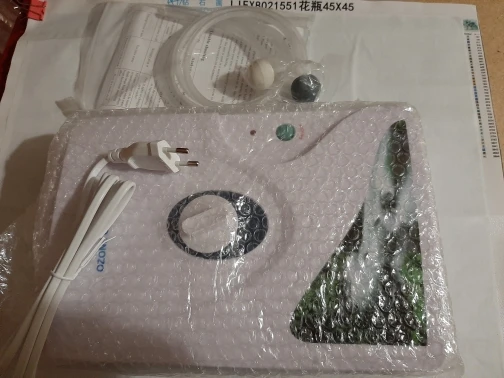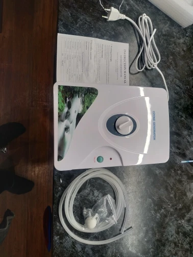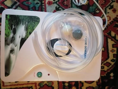 Работает отлично, озон валит как из ведра, эффект чувствуется, жаль только в комплекте было два одинаковых шарика, темных, которые для воздуха, а белого для воды не было, кстати у многих на фото в отзывах тот же косяк.