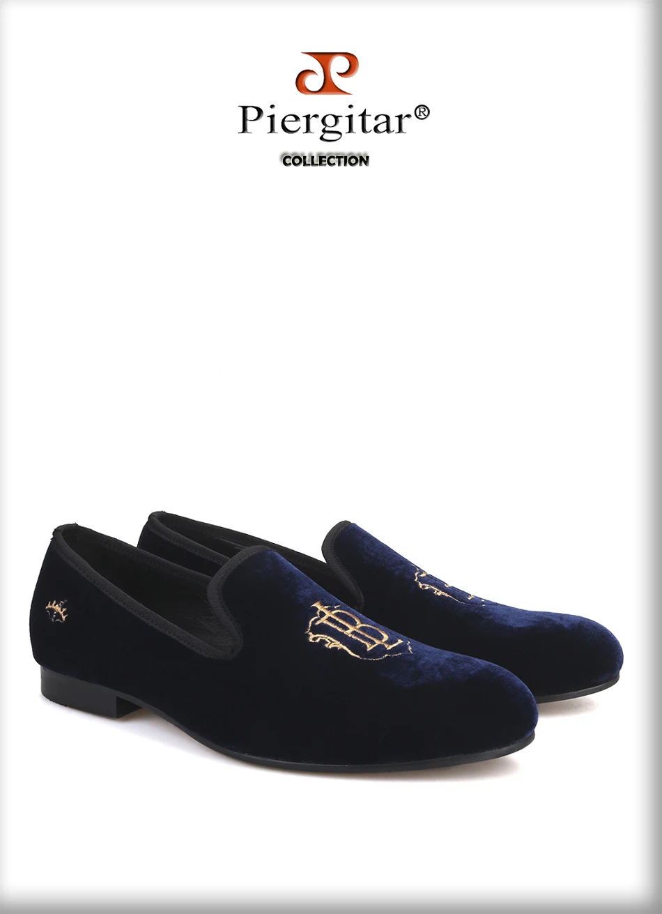 Мужские бархатные туфли Piergitar в британском стиле с вышивкой льв...