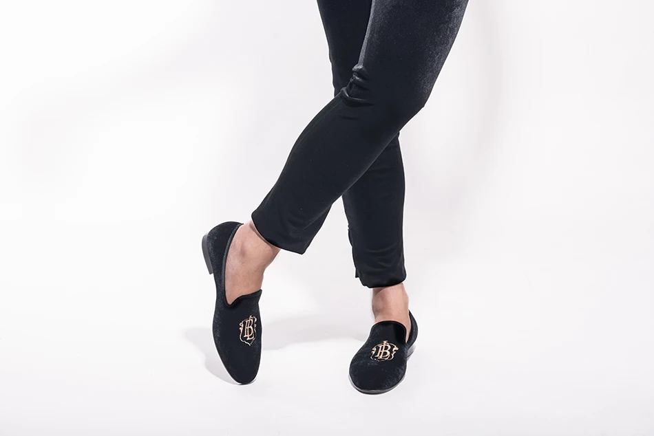 Piergitarмужские бархатные Тапочки ручной работы черного цвета; Лоф...