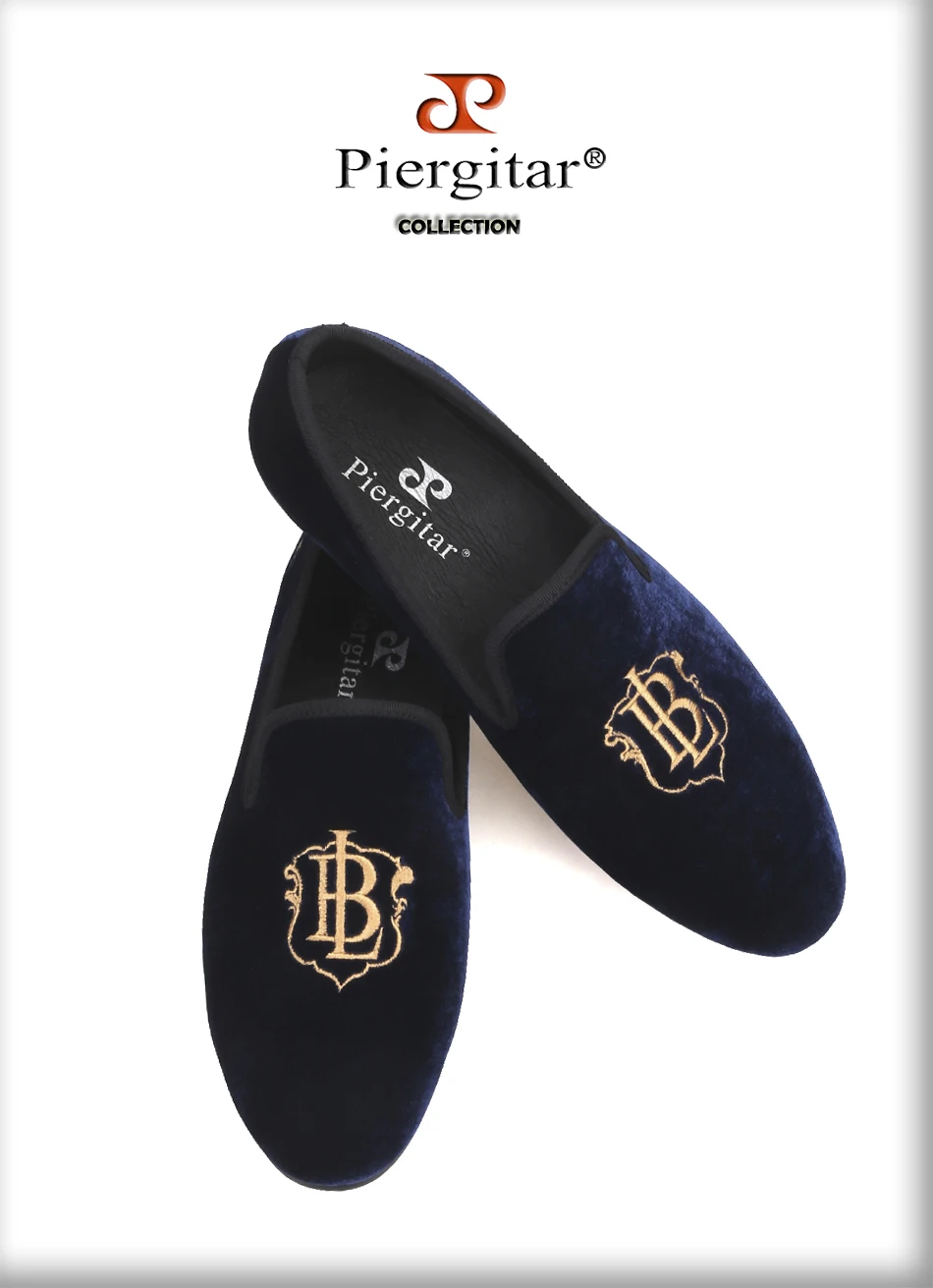 Брендовые мужские бархатные Тапочки Piergitar с вышивкой на русском...