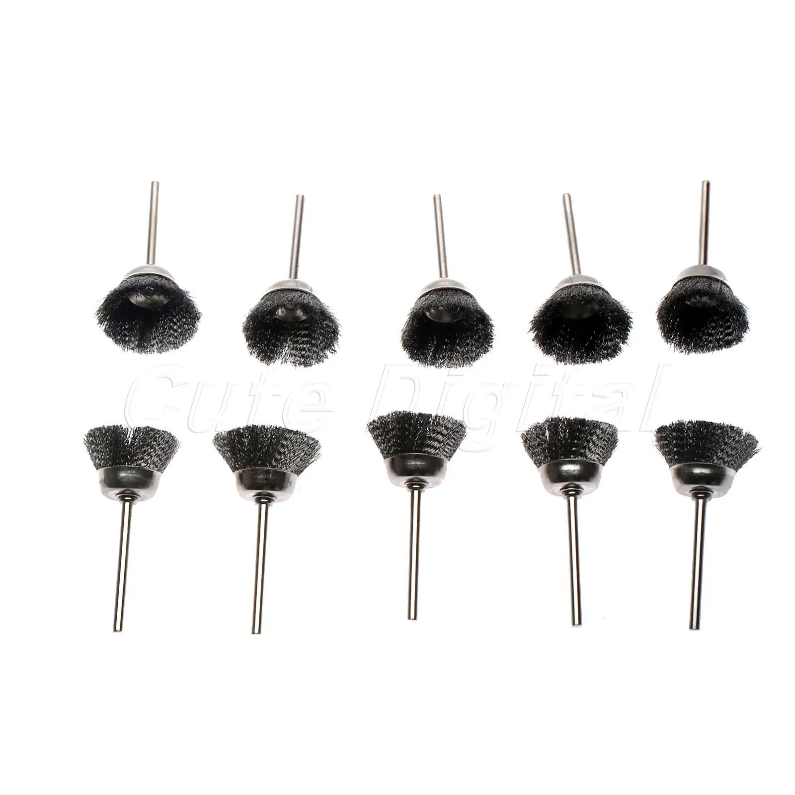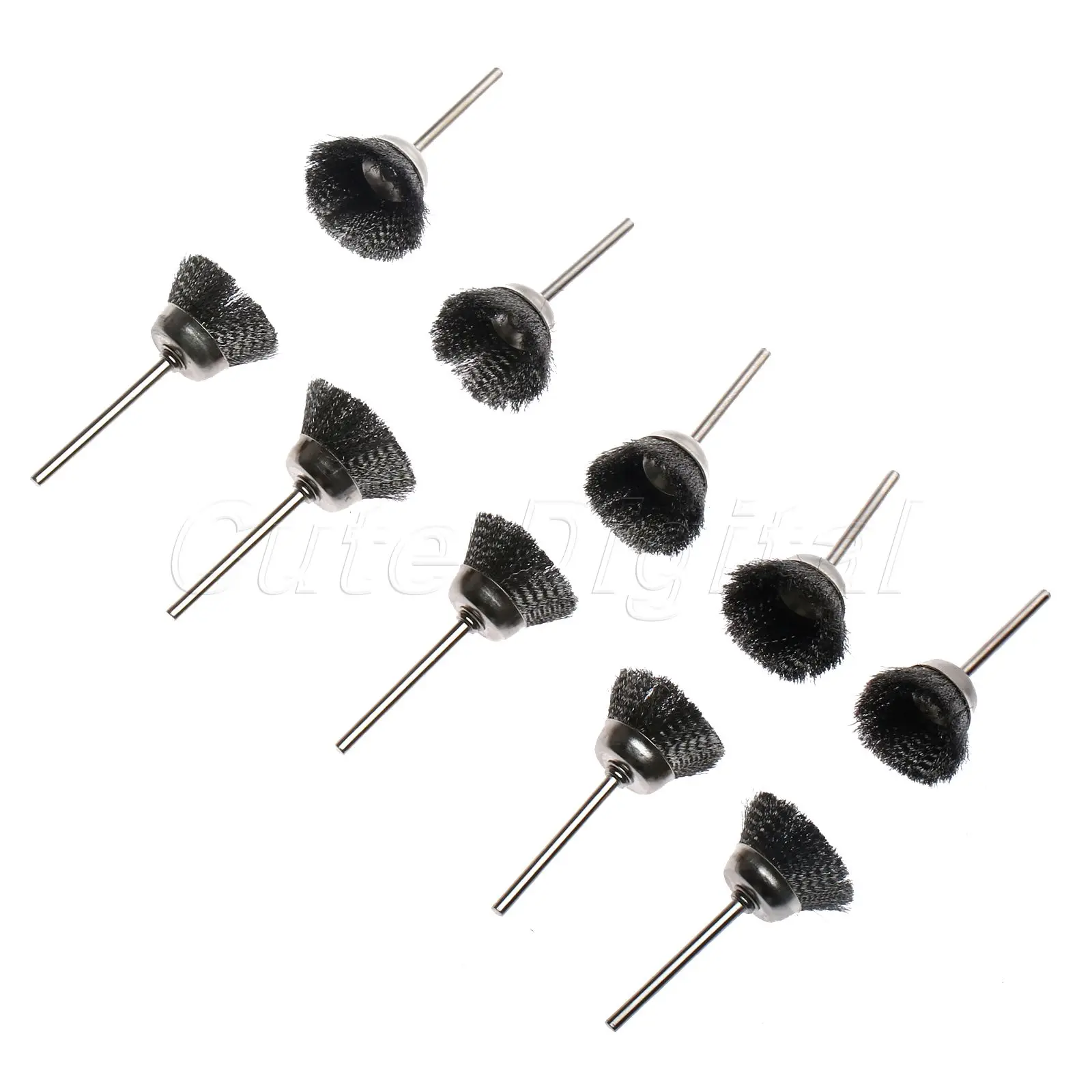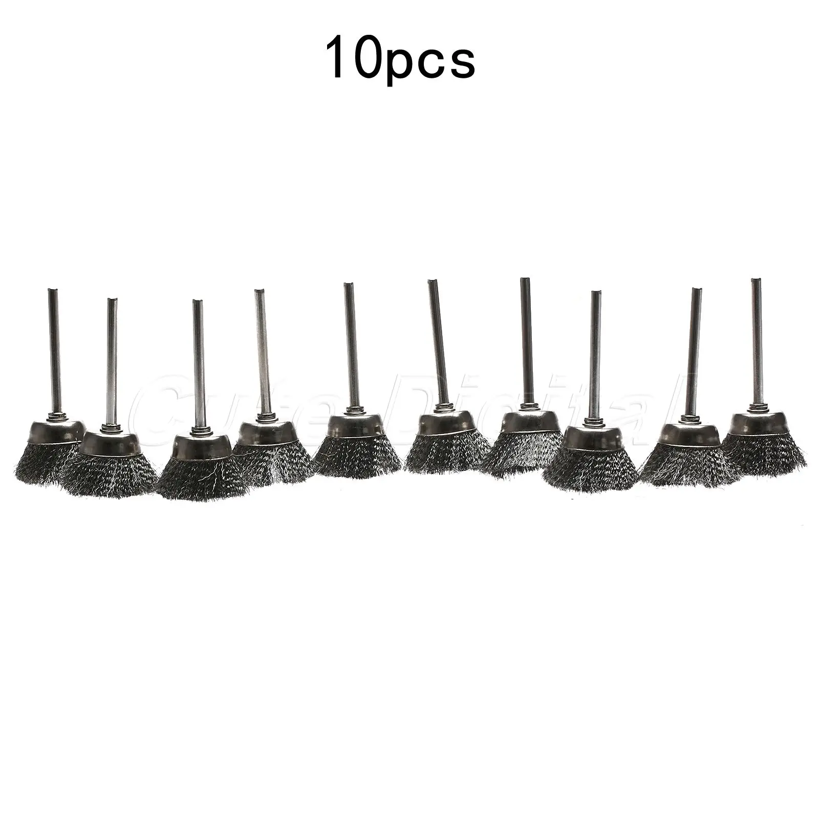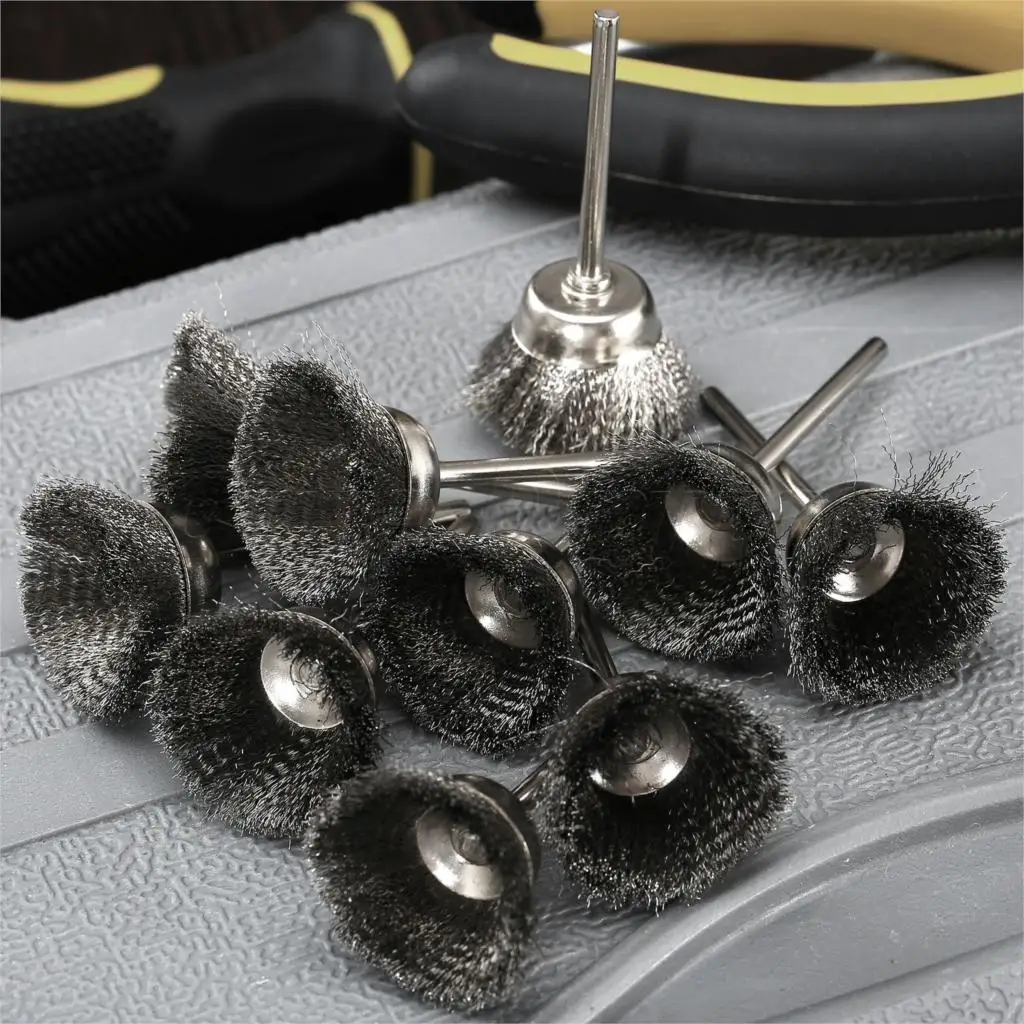 10 шт./лот, металлические вращающиеся инструменты Dremel, аксессуары, 3 мм хвостовик, 25 мм, серебристая стальная проволочная чашка, кисти, вращающаяся шлифовальная машина