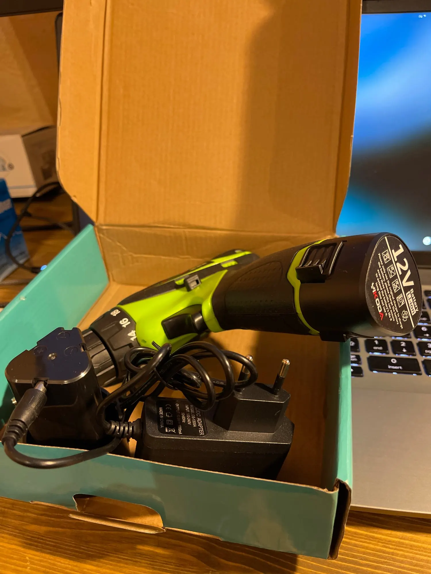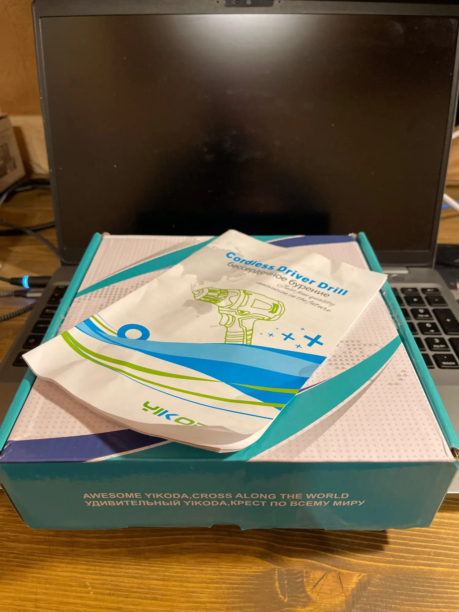 Супер классная вещь для домашнего самодельщика или мастера, умеет сверлить и закручивать шурупы. Коробка по дороге помялась, но все содержимое запаковано в транспортировочный пакет и надёжно защищено. В Украине за 5 дней курьером до двери