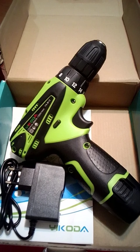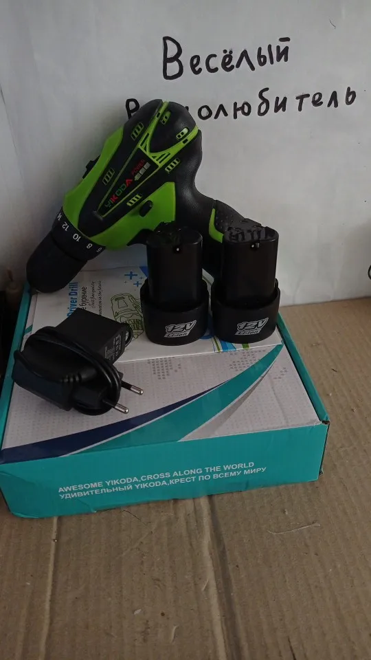 Электродрель шуруповёрт Yikoda 12 В.Трещетка работает все исправно Спасибо продавцу! рекомендую всем к покупке не пожалеете . Очень быстрая доставка за неделю до Перми .Шикарноя упаковка ничего неповреждено. Хорошая мощность .Думаю буду заказывать здесь ещё! Спасибо)