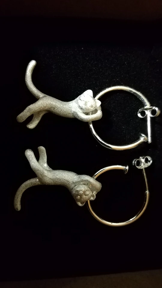 Новое прибытие Очень прекрасный Кунг-фу Кошка дизайн серьги двойного использования Подлинная стерлингового серебра 925 Ювелирные изделия ручной работы Оригинальные подарки