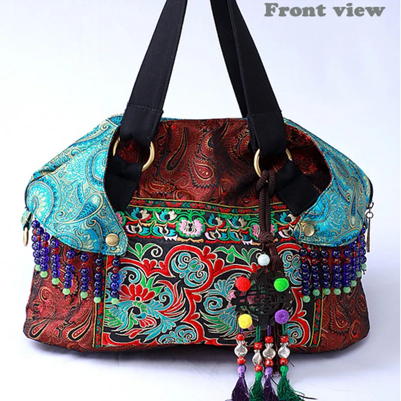 Женская сумка через плечо, с двусторонней вышивкой и бисером, ручной работы