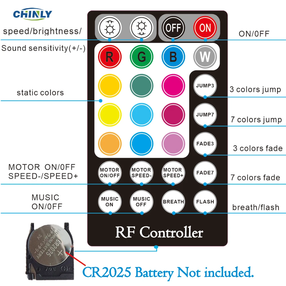 Control mothed: Bluetooth Control,Music control,RF remote control