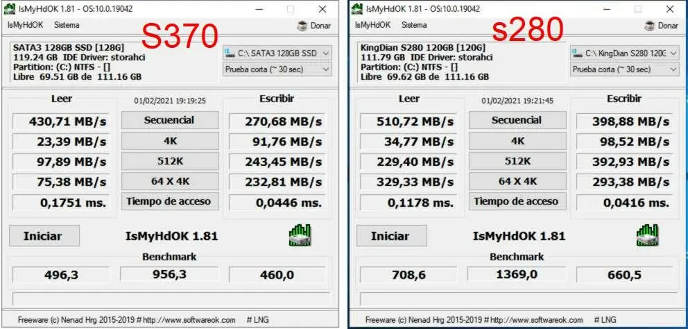 Иди вперед, что мне понравилась эта марка, дешево и хорошо по цене, я купил и рекомендовал много раз. На этот раз я заказал еще один S280, и продавец прислал мне s370, клон, с которым я работаю, как я всегда делал, и ниже есть результаты, ниже скорости. Я открываю спор, и продавец говорит мне, что если я не знаю, что я покупаю, я спрашиваю, я повторяю, что он отправил товар, который я не купил. Aliexpress дает мне половину причины и предлагает или возвращает деньги, заплатив за доставку, то есть платить больше за доставку, чем то, что стоит ssd, или возврат 50%. Я принимаю второй вариант, но продавец принимает возврат, говоря, что он работает хорошо. Так что я жду, что происходит в конце, так как я полагаю, что aliexpress даст вам причину того, что я вижу в последнее время, что дает причину продавцам, не имея этого.