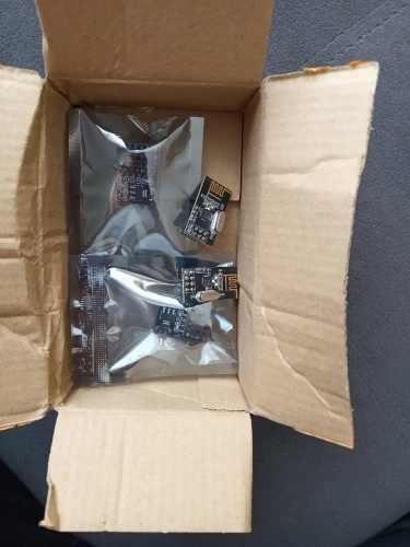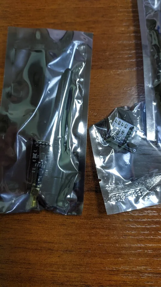 Эта позиция (два nrf24 модуля) не была запечатана в плёнку. Скорее всего, потому что места в коробке, куда положили все позиции заказа, не хватало. Сэкономили на размере почтового отправления. Остальные позиции заказа пришли запечатанные в плёнку.