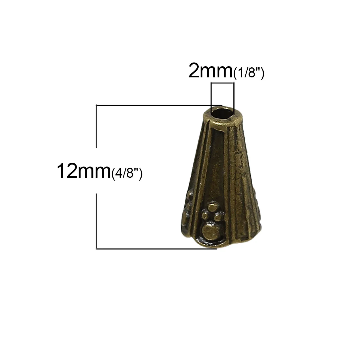 DoreenBeads шапочки для бусин конусная античная бронза (подходит для бусин 8 мм) узор 12 мм (48 дюйма) x 8 мм (38 дюйма),100 шт.