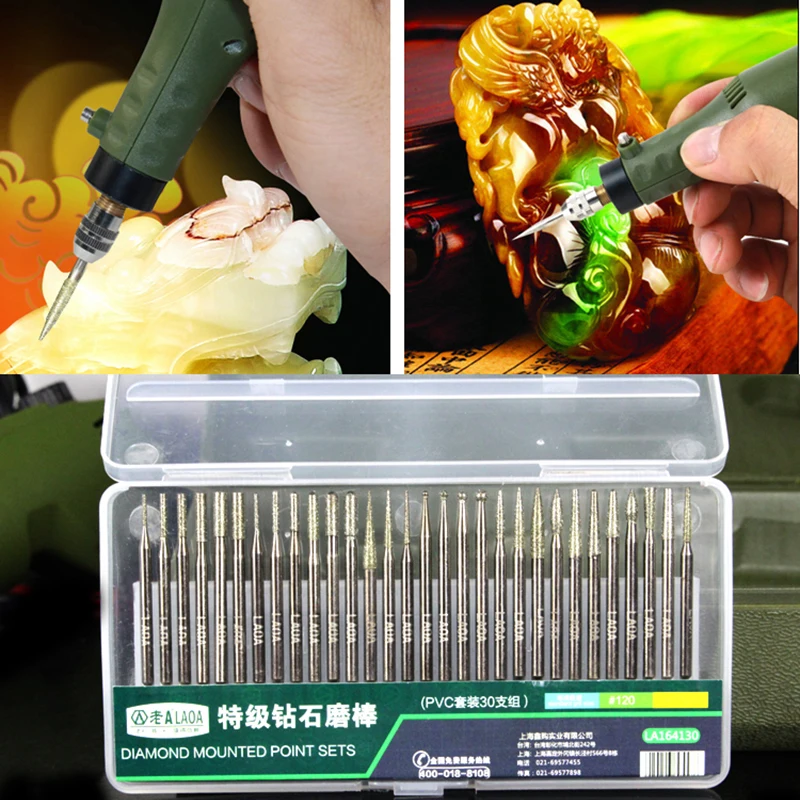 LAOA 30 шт. Высококачественный алмазный полированный стержень 3 мм инструмент для резьбы по нефриту электрический шлифовальный узел