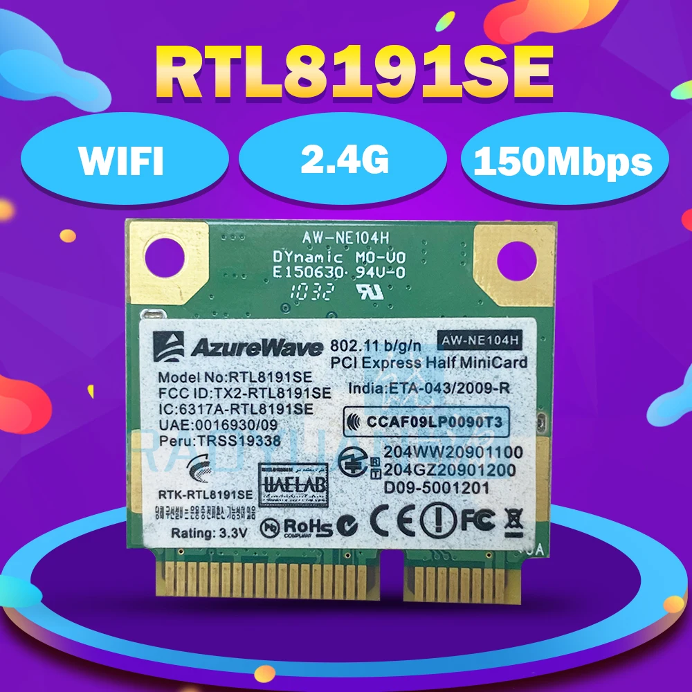 AzureWave AW-NE104H AW-NE107H RTL8191SE 150 Мбитс Half Mini PCIe PCI-Express Wlan Беспроводная карта Wi-Fi icon star icon star icon star icon star icon star