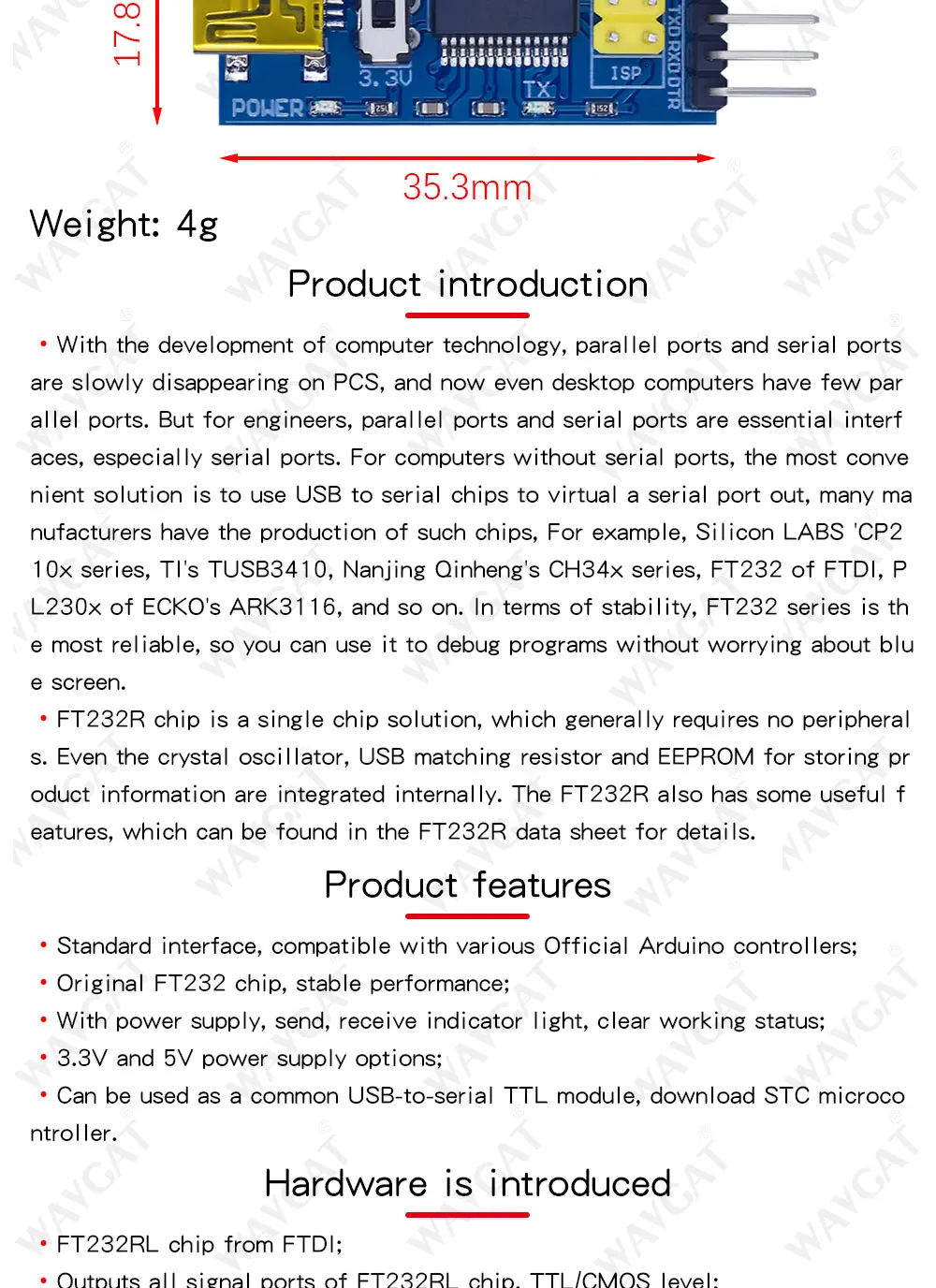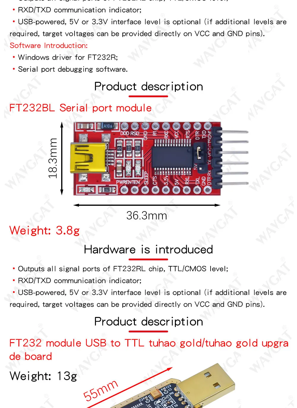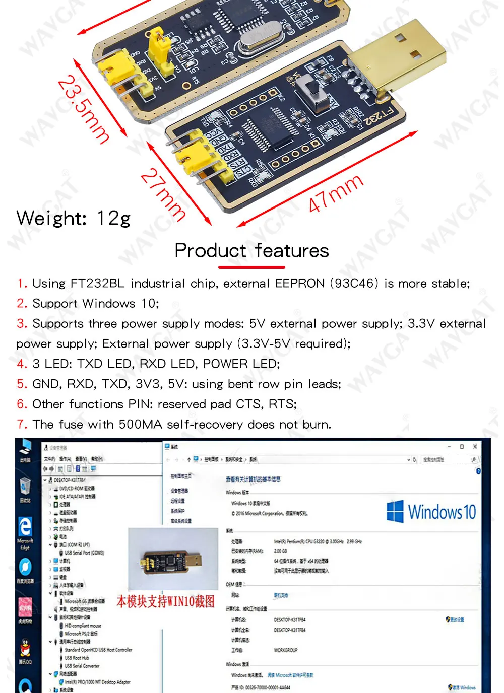 Модуль последовательного адаптера WAVGAT FT232RL FTDI USB 3,3 В 5,5 В в TTL для мини-порта Arduino FT232. Покупайте хорошее качество, пожалуйста, выбирайте меня