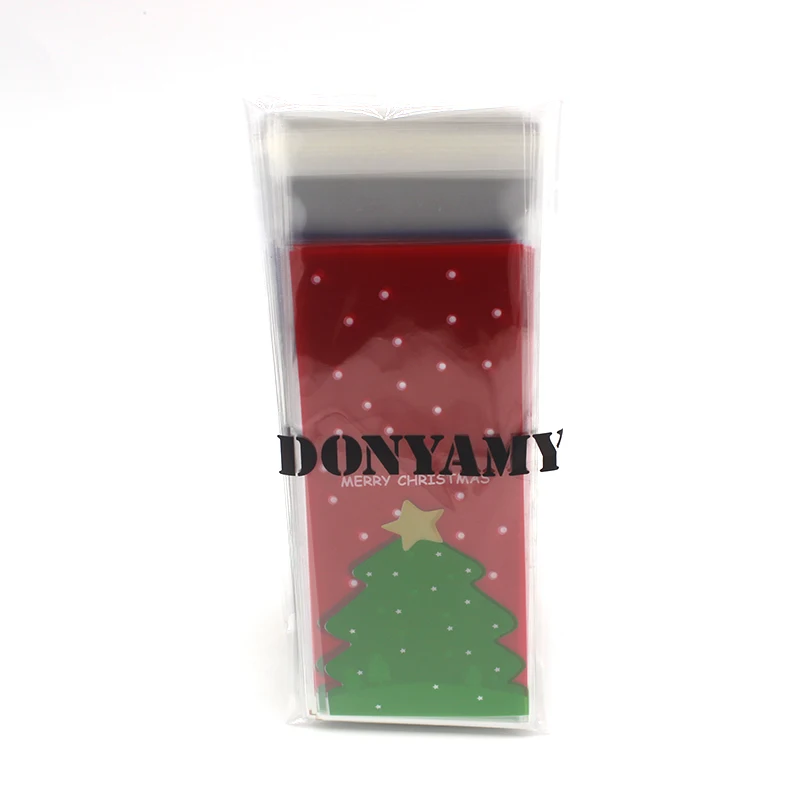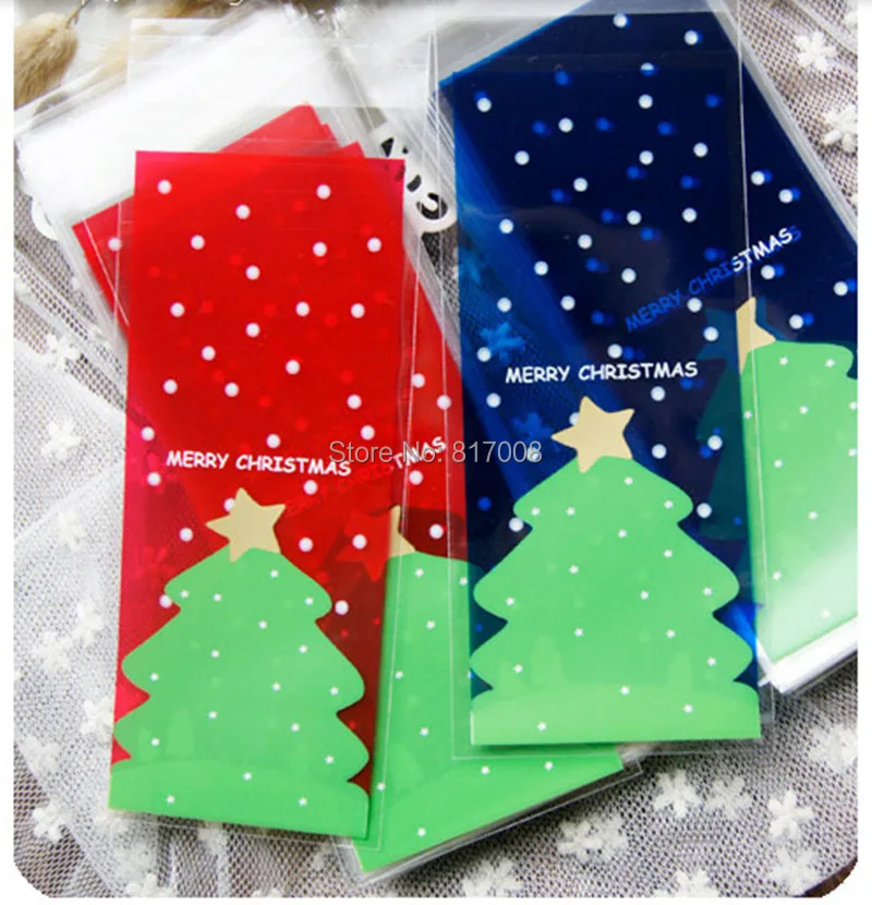 50 шт.лот, рождественские пакеты для печенья, прозрачные красные, синие самоклеящиеся пакеты для рождественской елки, Подарочный упаковочный пакет сделай сам