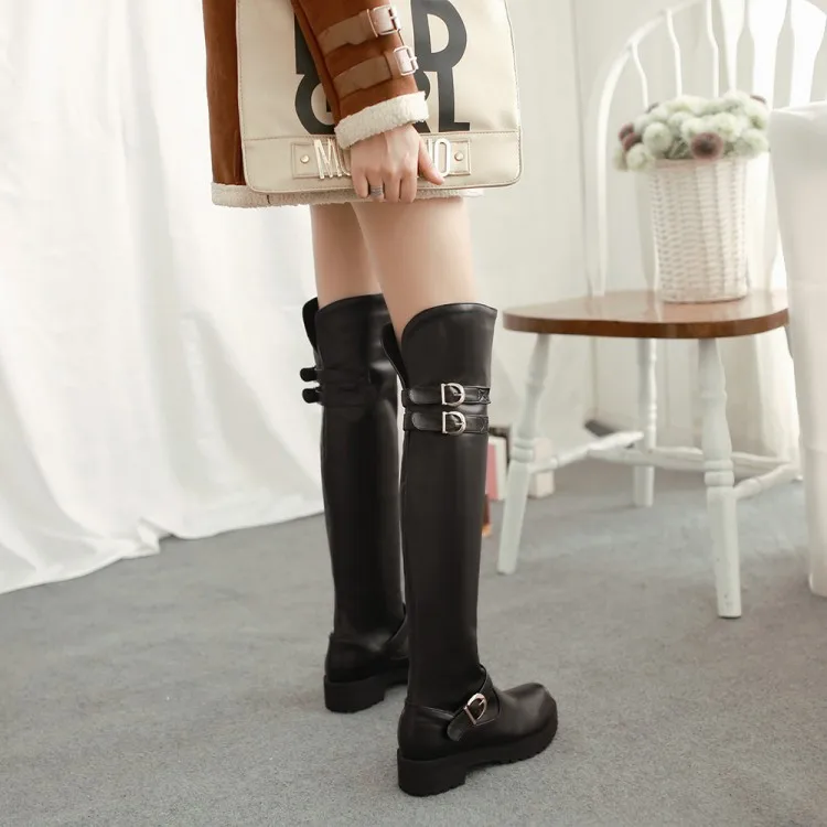 Женские зимние сапоги выше колена, на толстом каблуке, размеры 34-43, с круглым носком, водонепроницаемые, теплые, на платформе, 2017