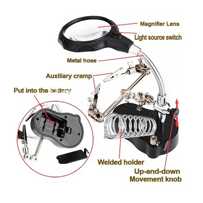 Светодиодная Лупа 3,5x 12X с подставкой для пайки, MG16126-A для паяльной работы с увеличительным стеклом